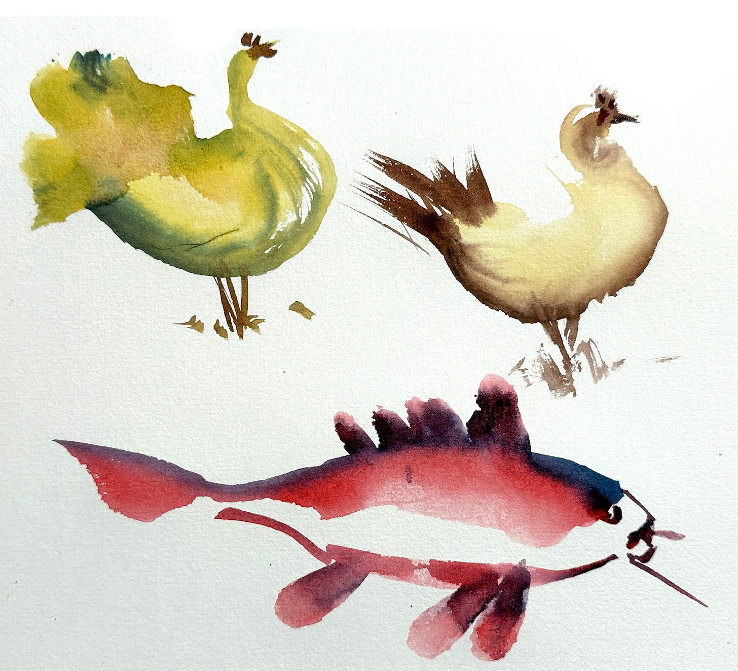 After a challenging exercise last week, this one is playful and creative. I’ve always admired the calligraphic approach to watercolour and am in awe of the many masters, both ancient and contemporary, who practice this style.