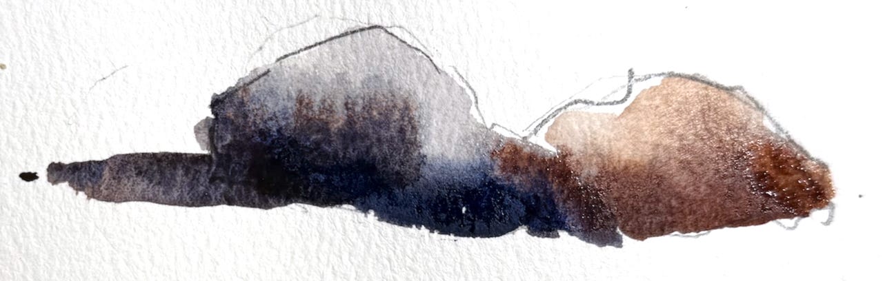 This same idea works for other things as well, like rocks. I’ve painted the dark bottom part first, then draged clean water upwards.