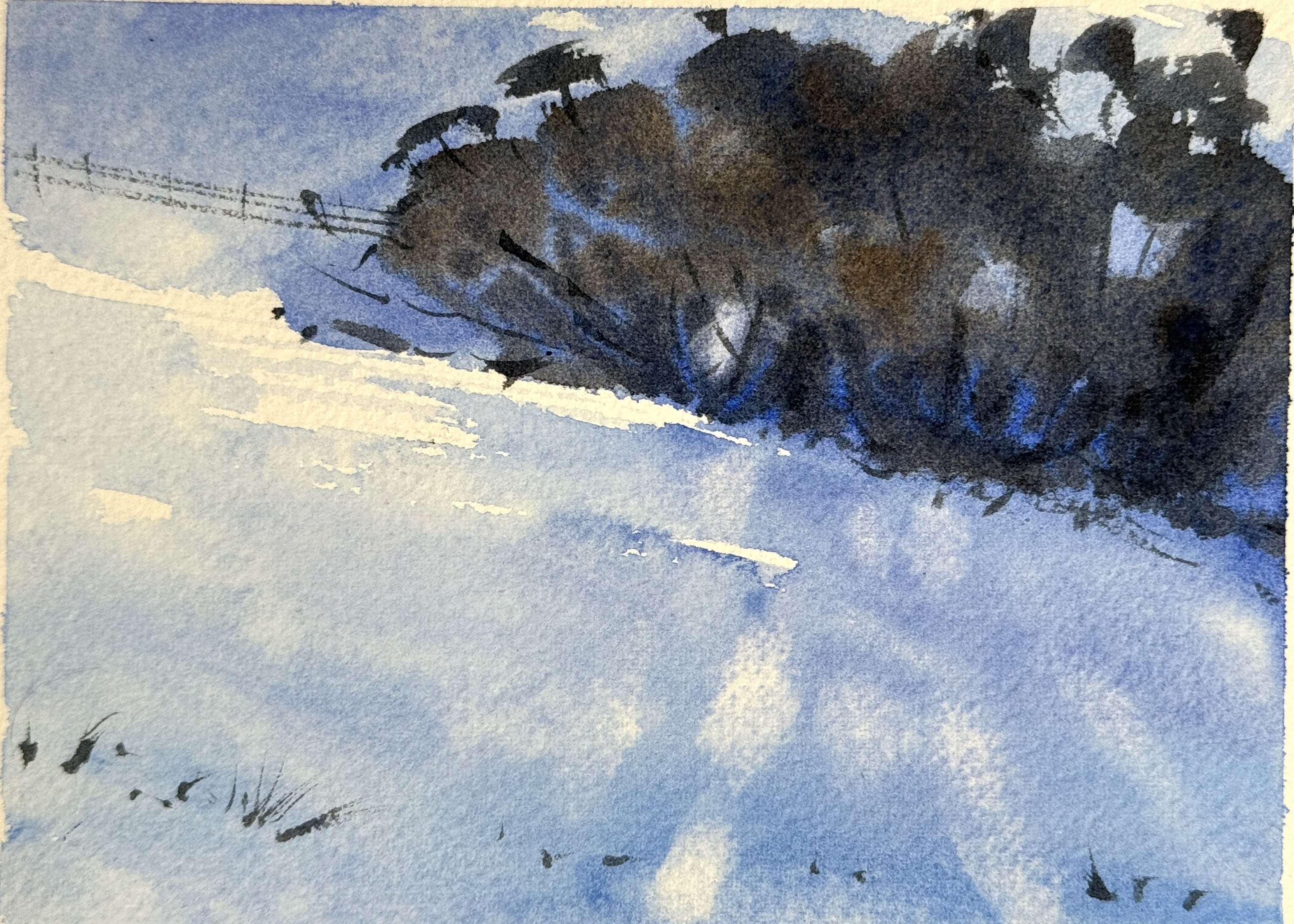 I use this often in my snow paintings. Lifting lets me adjust the light pattern after I see how the washes have settled. You can’t always plan where those dapples of sunshine should go until you see the painting developing.