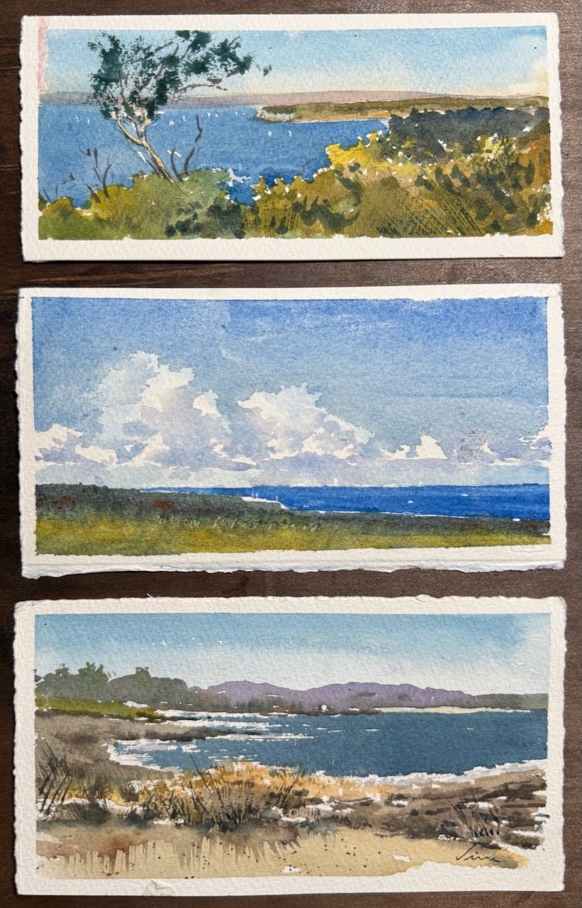 The idea for this post came from a series of small seascapes I painted on off-cuts. Instead of painting bookmarks I decided to create panoramas. You may have seen these in my notes earlier this week.